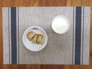 ≪おやつ≫ ・牛乳(アレルギー対応は豆乳) ・カレーサモサ