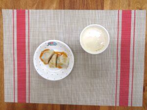 本日のおやつの「カレーサモサ」は、おからを使用したおやつです。ツナを使用することで、おからもしっとりとし、旨味も加わりカレー味で食べやすくしました。
