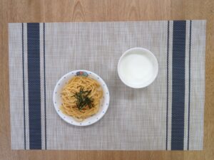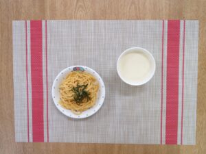 ≪おやつ≫ ・牛乳(アレルギー対応は豆乳) ・たらこスパゲッティ