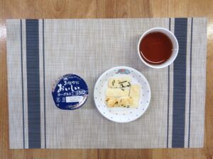 ≪おやつ≫ ・番茶 ・カップヨーグルト(アレルギー対応はカップゼリー) ・辻安全食品のソフト煎餅