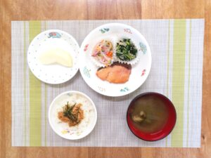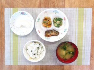 今日は、子どもたちも食べなれている和食メニューです。納豆ご飯やぶりの照り焼きのおかわりが多く、みんなよく食べていました。