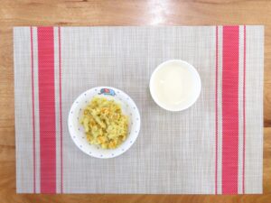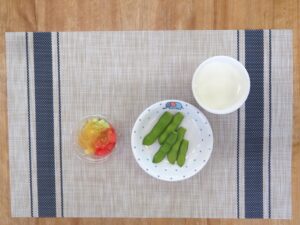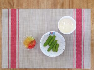 ≪おやつ≫ ・牛乳(アレルギー対応は豆乳) ・フルーツゼリー ・塩ゆで枝豆