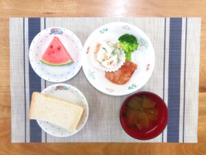 おやつの「フルーツゼリー」は、果物を小さく切って星がちりばめられているような華やかさのあるおやつにしました。「おいしい!」と子どもたちも喜んで食べていました。