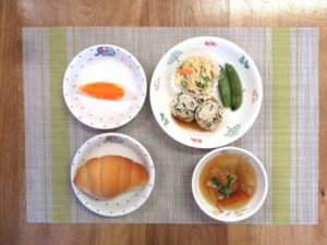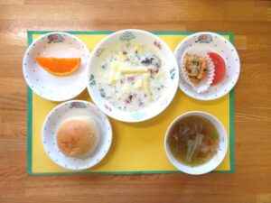 本日の「レタススープ」と「鮭おにぎり」はすみれ組のリクエストメニューです。