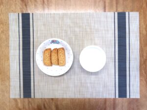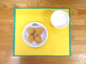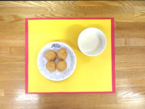 ≪おやつ≫ ・牛乳(アレルギー対応は豆乳) ・レモンドーナツ(アレルギー対応は卵なしレモンドーナツ)