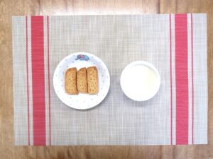 ≪おやつ≫ ・牛乳(アレルギー対応は豆乳) ・全粒粉入りチーズバー