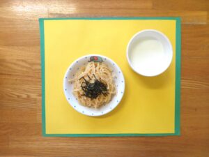 本日の「わかめご飯」と「たらこスパゲッティ」は、すみれ組のリクエストメニューです。