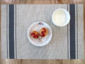 ≪おやつ≫ ・牛乳 ・チーズドック(アレルギー対応は卵なしチーズドック)