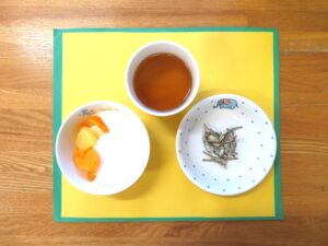 また、幼児クラスとひよこ組は「するめ」を、つぼみ・はと組は「食べる煮干し」をいただきます。