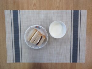 ≪おやつ≫ ・牛乳(アレルギー対応は豆乳) ・二色サンド(アレルギー対応はマーガリン抜き)