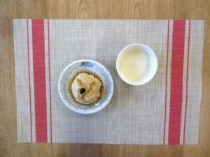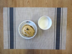 ≪おやつ≫ ・牛乳(アレルギー対応は豆乳) ・黒糖蒸しパン(アレルギー対応は黒糖豆乳蒸しパン)