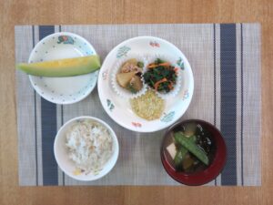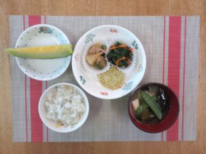 2025年6月13日 by 和光保育園 6月13日(金)給食 6月13日(金)おやつ 6月13日(金)アレルギー対応給食 ≪給食≫ ・しらす入りご飯(アレルギー対応は白ごま抜き) ・味噌汁 ・そら豆ととうもろこしのコロッケ ・大根と豚肉の炒り煮 ・磯辺あえ ・フルーツ(メロン) ≪おやつ≫ ・牛乳 ・ジャムスコーン 本日は、旬のそら豆を使った「そら豆ととうもろこしのコロッケ」です。そら豆の香りととうもろこしの甘みがあり、なめらかな口当たりのコロッケです。 たんぽぽ組さんがそら豆むきのお手伝いをしてくれました。