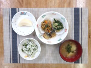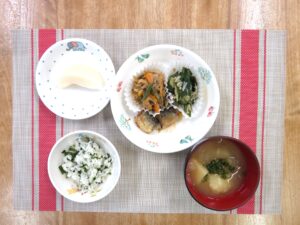≪給食≫ ・わかめご飯 ・味噌汁 ・いわしの味噌煮 ・おくらのごまあえ(アレルギー対応はおくらのおかかあえ) ・切り干し大根の煮物 ・フルーツ(梨)